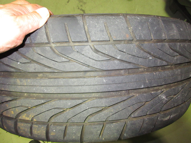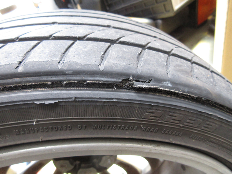 タイヤは内ベリがひどくバーストしていましたので中古タイヤで4本交換を行いました。