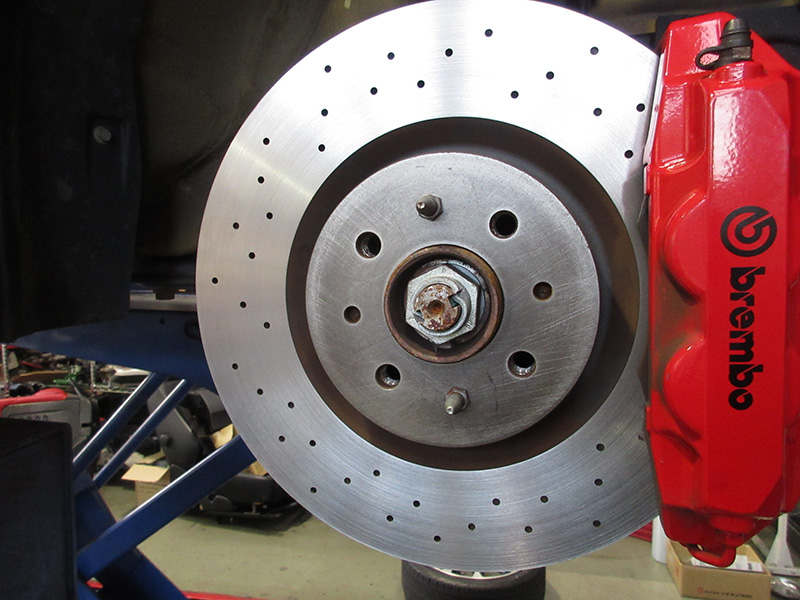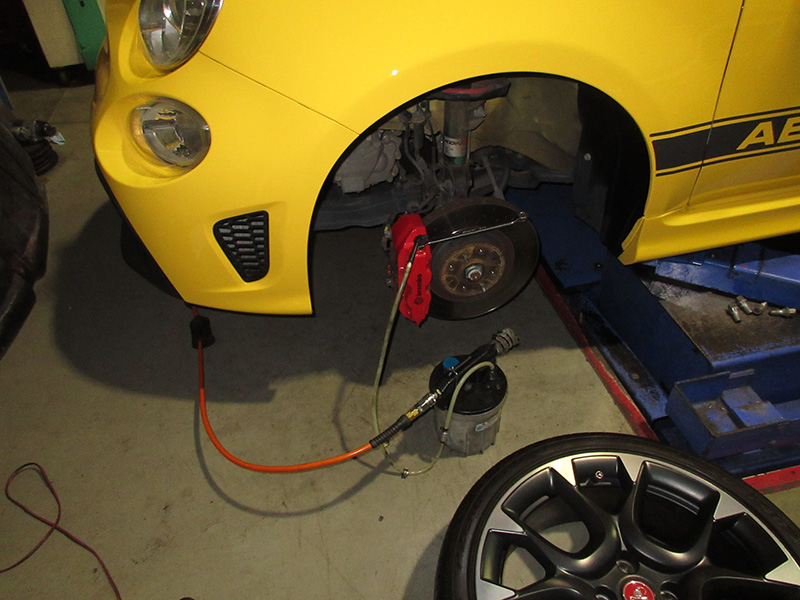 ブレーキオイルの交換、フロントブレーキローターの研磨、フロントブレーキパッドの交換を行いました。