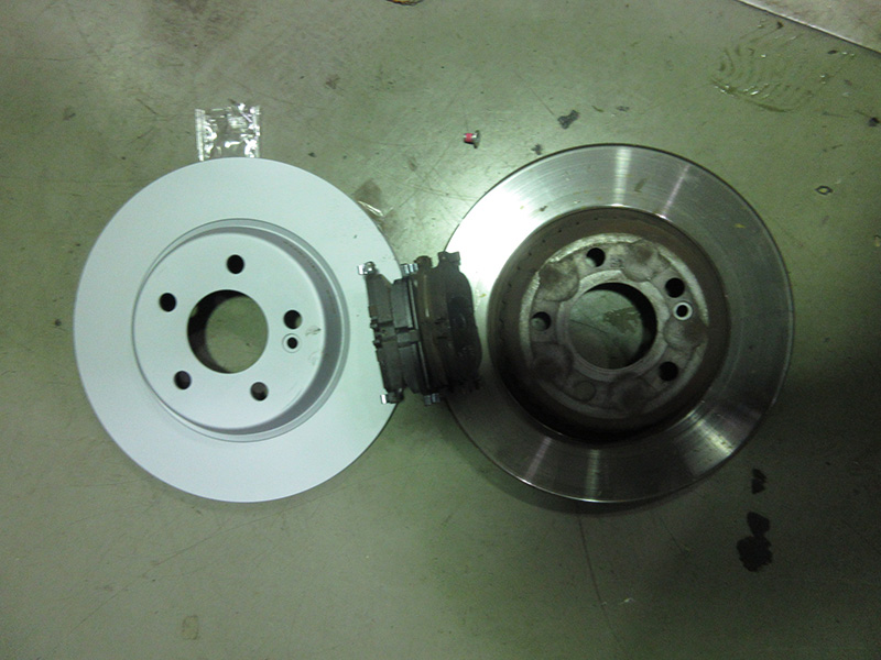 業者様より車検の依頼をいただきました。 漏れがあったラジエターサブタンクの交換、ブレーキパッドの交換、ブレーキローターの交換、エアコンフィルターの交換、ワイパー交換等を行いました。