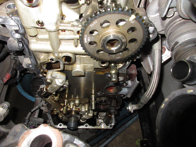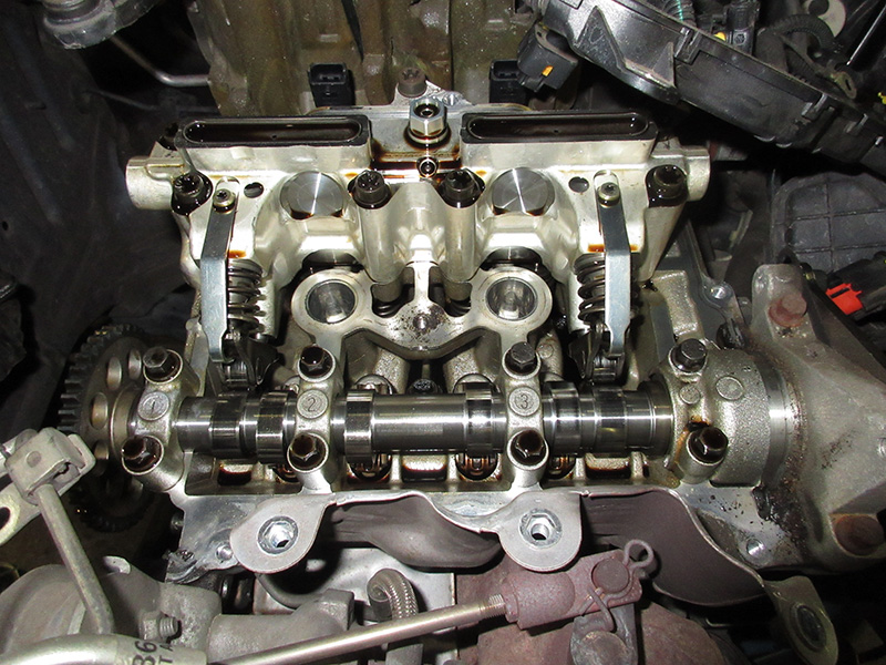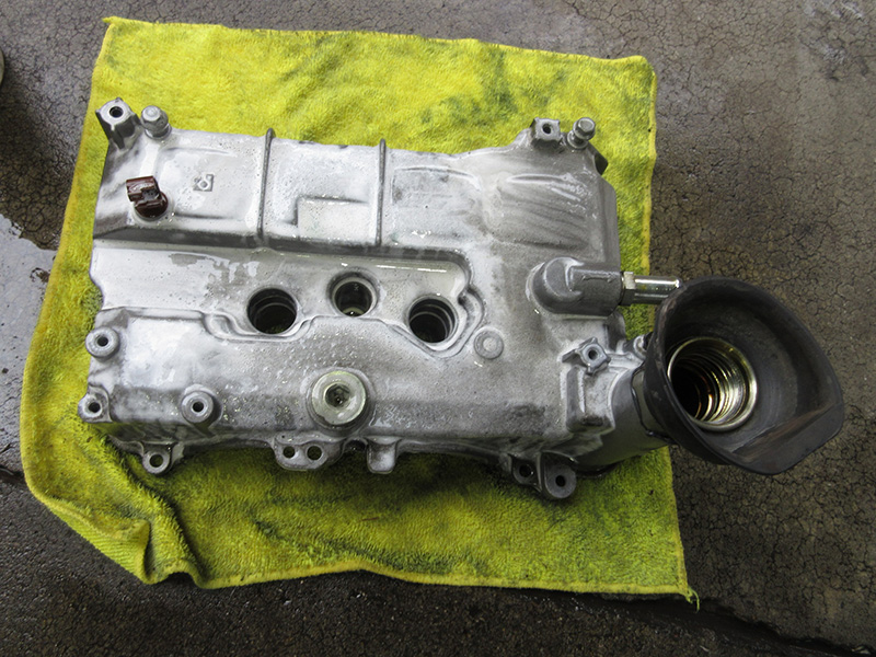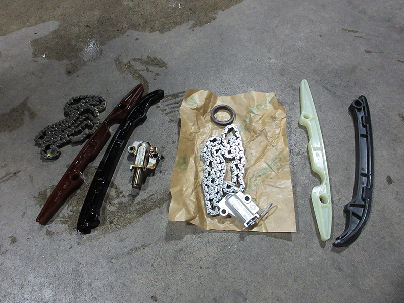 タイミングチェーンに問題がありチェーンおよびチェーンガイド、ガイドテンショナー、オイルシールの交換修理を行いました。またタペットカバーパッキン、ウォーターポンプおよびガスケット、テンショナー、プーリーの交換も行いました。