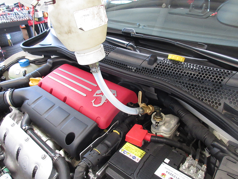 アバルト 595のオーナー様より車検の依頼をいただきました。ブレーキオイルの交換、クラッチオイルの交換等を行いました。