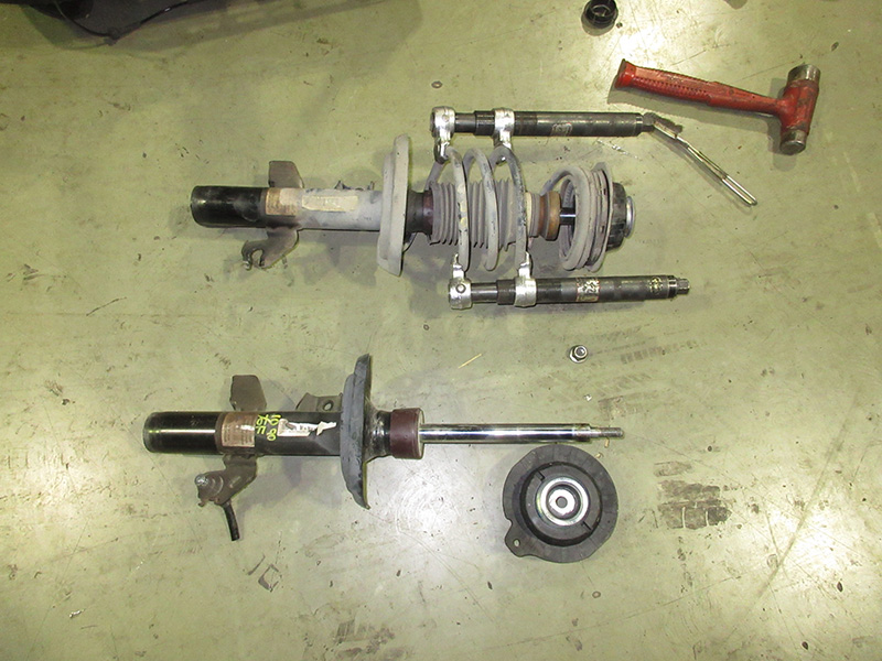 点検の結果フロントショック周りの問題で、左右のフロントショックを中古パーツで交換、左右のフロントアッパーマウントの交換修理を行いました。