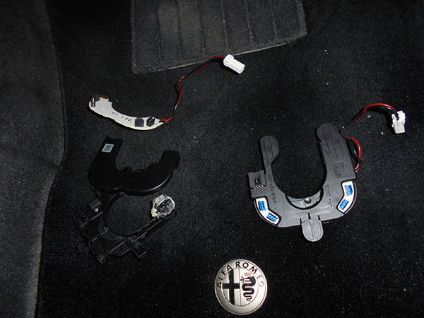 ステアリングホイールのホーンは基盤に問題があり、当社在庫のユーズド基盤にて交換修理。