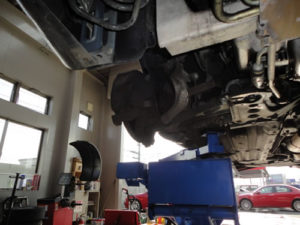 まずリフトアップにて下回りを点検してみますと、シャフトブーツが破けていました。